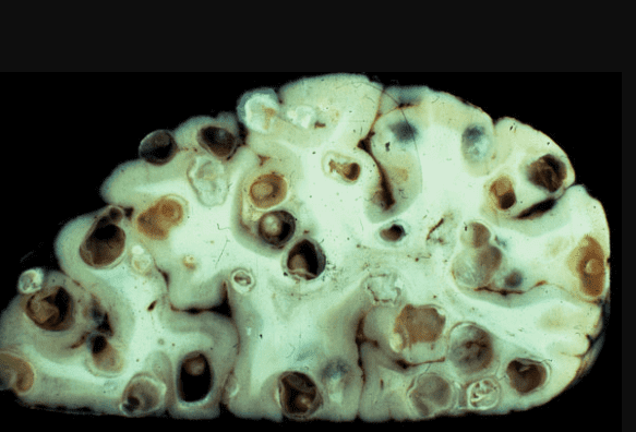 Un alt caz care m-a șocat cu adevărat. Creierul unui bărbat de 49 de ani era complet populat de paraziți și larvele lor. Cauzele morții - accident vascular cerebral ischemic cerebral. Dar aceasta este doar o consecință! De fapt, paraziții pur și simplu se hrăneau cu țesuturile creierului uman, l-au devorat de viu! În timpul vieții sale, persoana a suferit de dureri de cap, a avut tulburări de somn și memorie. Apoi, când multe zone au fost deja afectate, a fost adăugată epilepsia. Șase luni mai târziu a murit.